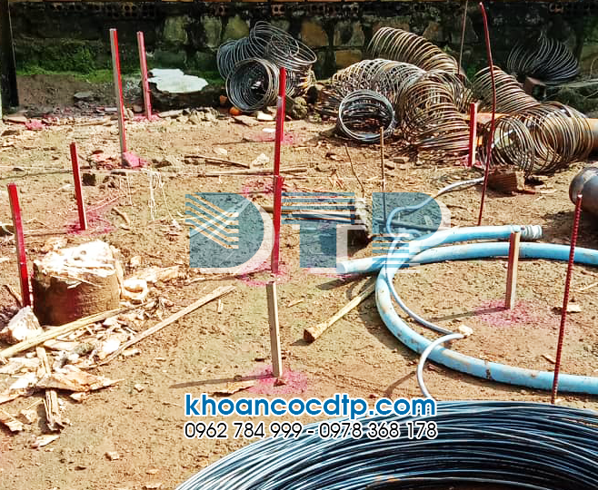 Mặt bằng chuẩn bị khoan cọc nhồi đã được định vị tim mốc